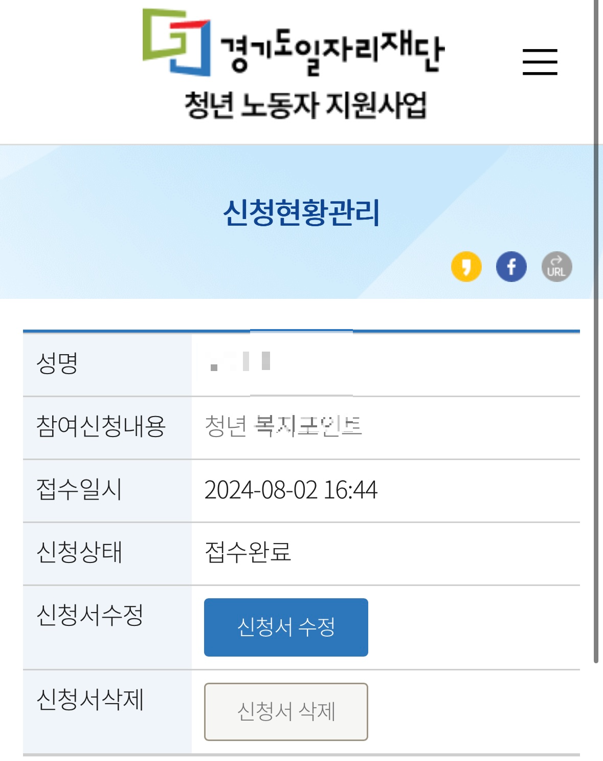 공지사항 더보기 2024.0726 [모집 공고] 2024년 경기도 청년 복지포인트 2차 모집 공고 (8.1.~ 8.12.18시) 1. 신청기간 : 2024. 8. 1.(목) 09:00 ~ 8. 12.(월) 18:00 2. 모집인원 : 13,000명 (2차) 3. 신청방법 : 청년 노동